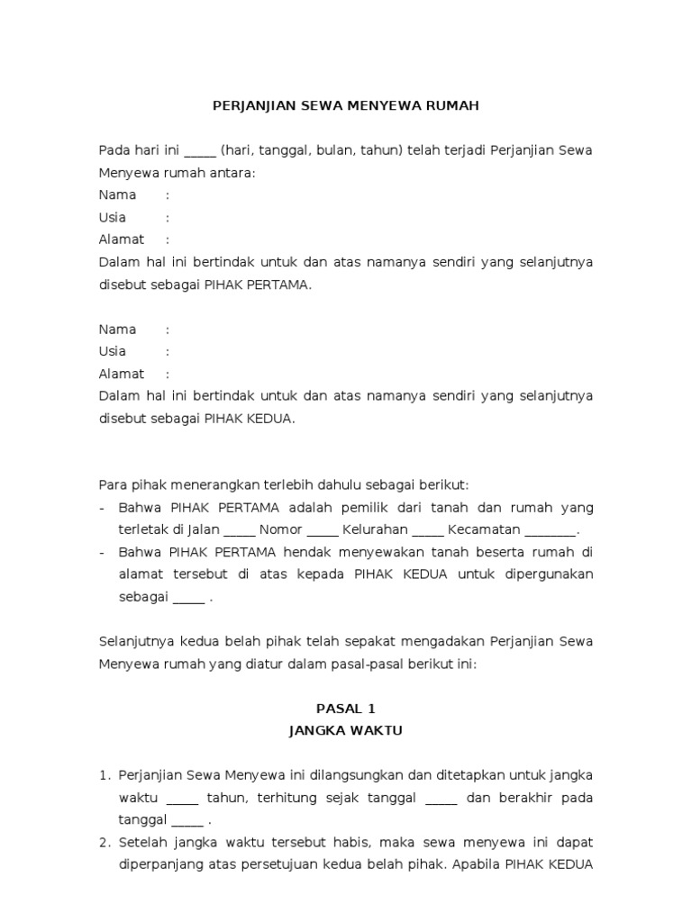 Tetapi, dalam beberapa kasus, ada juga surat perjanjian sewa yang menyangkut barang lain. Surat perjanjian sewa rumah di indonesia beserta contohnya sesuai pasal 1548 kuhperdata. Pada hari ini selasa, 15 april 2014, yang bertanda tangan di bawah ini Surat perjanjian sewa menyewa ini biasanya berlaku untuk menyewa rumah atau ruko. Dengan adanya surat perjanjian tersebut akan memberikan rasa aman kepada kedua belah pihak demikian surat perjanjian kontrak rumah desa diro rt 02 rw xi pendowoharjo, sewon surat perjanjian sewa mobil.